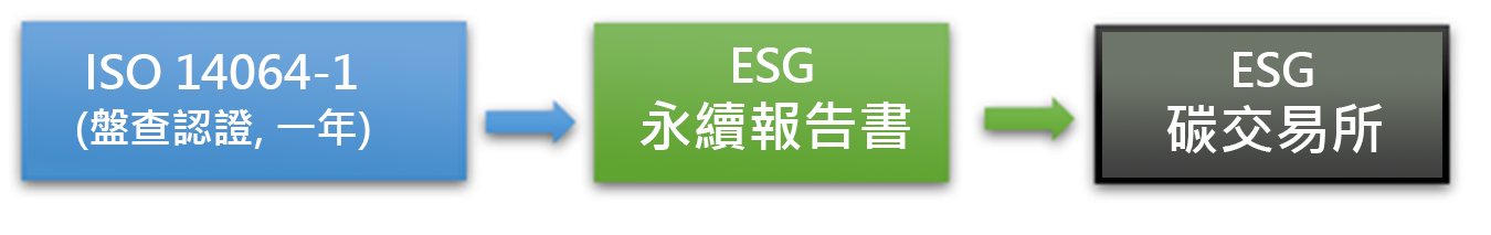 碳盤查需求收集完整一年的碳排細項、單據等. 故2026 是決戰年, 2024 就是備戰期, 2025年內一定要拿到ISO 14064-1 的盤查認証. 才能出ESG永續報告(ESG改善報告書), 才能拿到碳權交易所的門票.