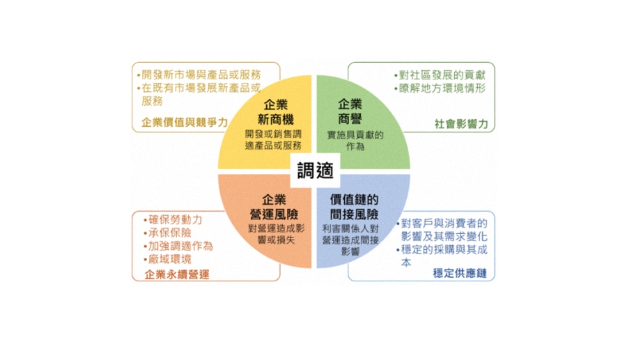在這樣的時代背景下,「調適」與「韌性」不再只是環境議題中的附屬概念,而是企業生存與成長的核心能力。企業唯有具備面對衝擊的韌性,並能在變動中快速調整策略與資源配置,方能在多重風險中維持穩定,甚至轉化為競爭優勢。